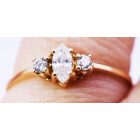 Anillo moderno oro 18k , macizo con navette de cubic central y dos cubic a sus laterales.