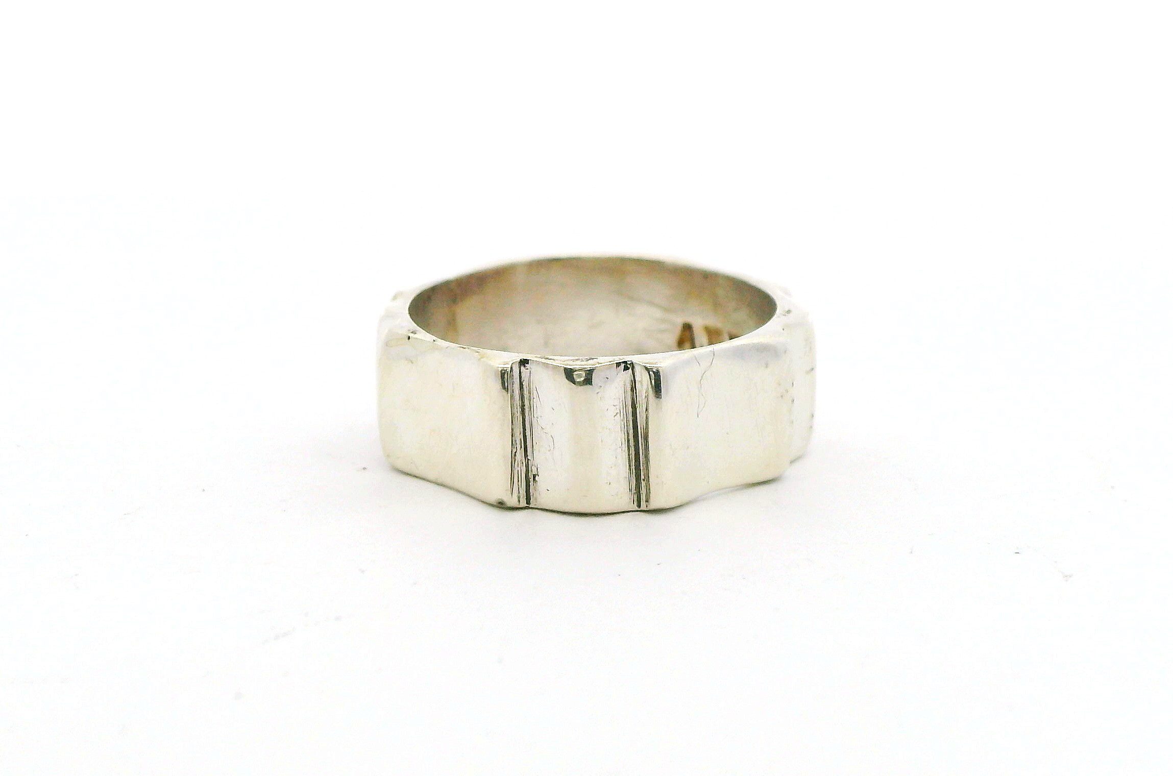 Anillo de diseño realizado por A, Belgiorno en plata 900, original. Modelo: 2 lineas x 1
