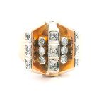 Anillo antiguo año 40 , de estilo chevalliero , realizado en oro 18k y engarces sobre platino. Posee brillantes autenticos .