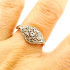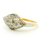 Anillo antiguo realizado en oro 18k y engarce sobre platino 950. Posee engarzados brillantes autenticos. Modelo: Marquiz.