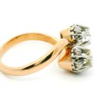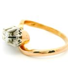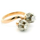 Anillo tu y yo antiguo realizado en oro 18k con engarces sobre platino 950. Posee brillantes autenticos talla moderna europea.