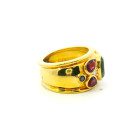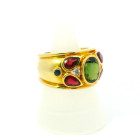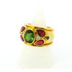 Anillo Cartier autentico sellado y punzonado , oro macizo 750. Posee turmalinas , zafiros y brillantes.