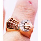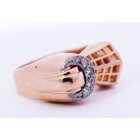 Anillo Chevallier antiguo , realizado a mano en oro 18k con engarces de brillantes sobre platino 950. Posee 5 brillantes talla 8 facetas , peso en kilates: 0,15 ct.