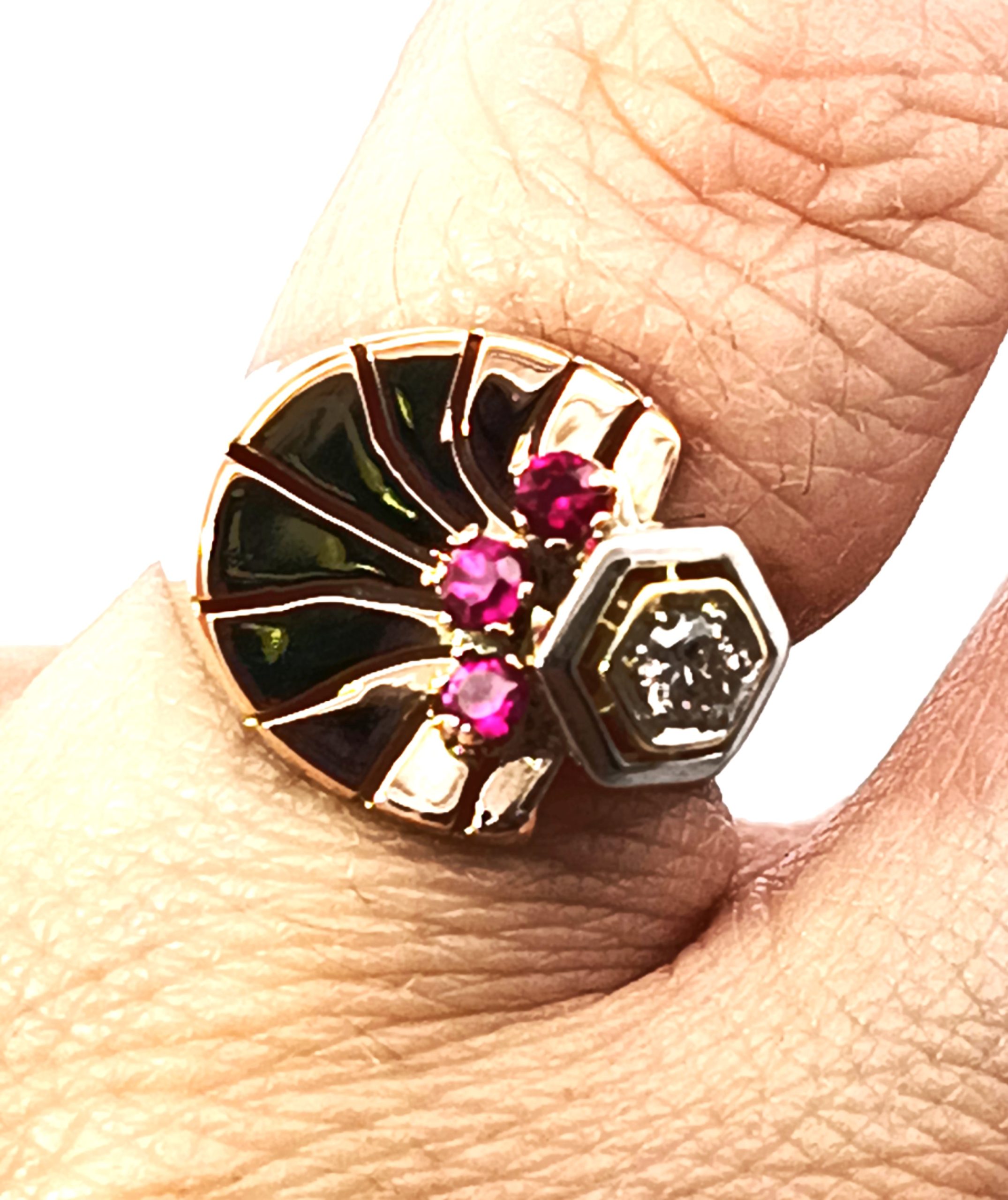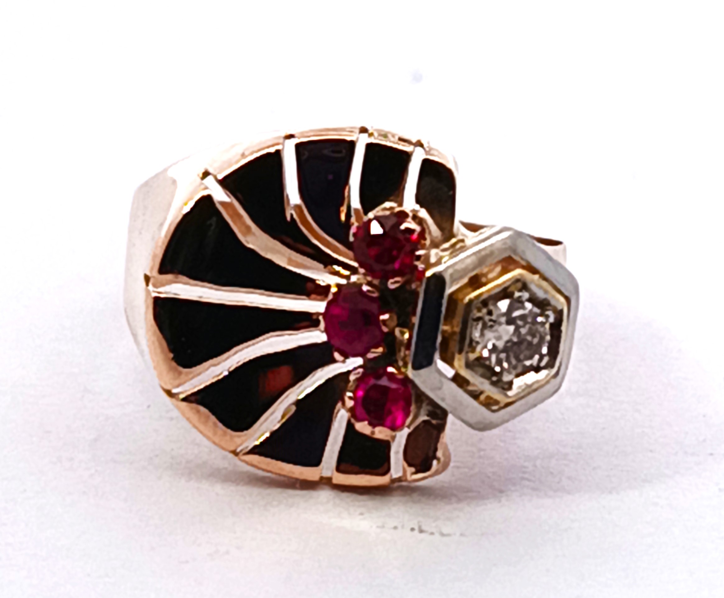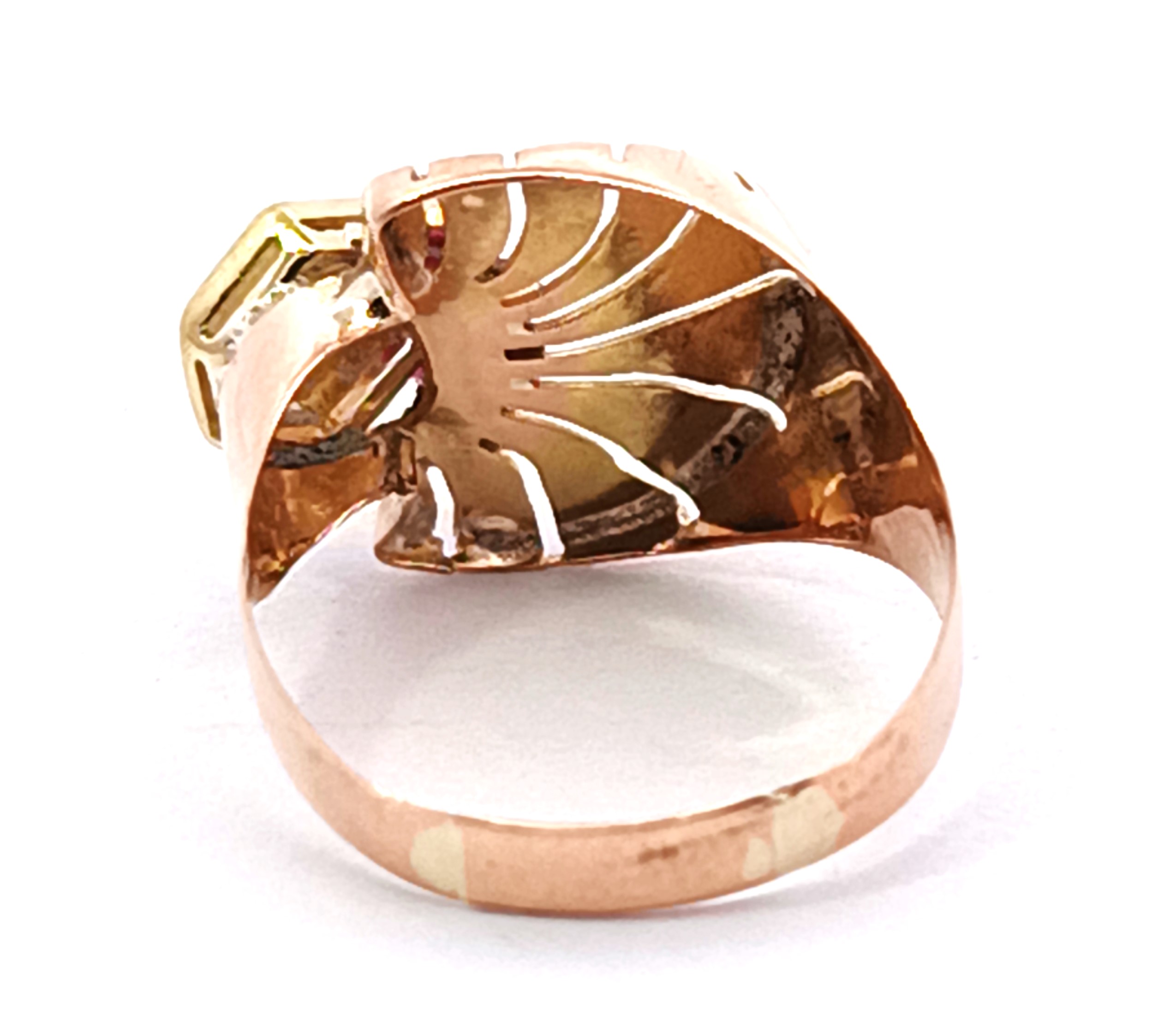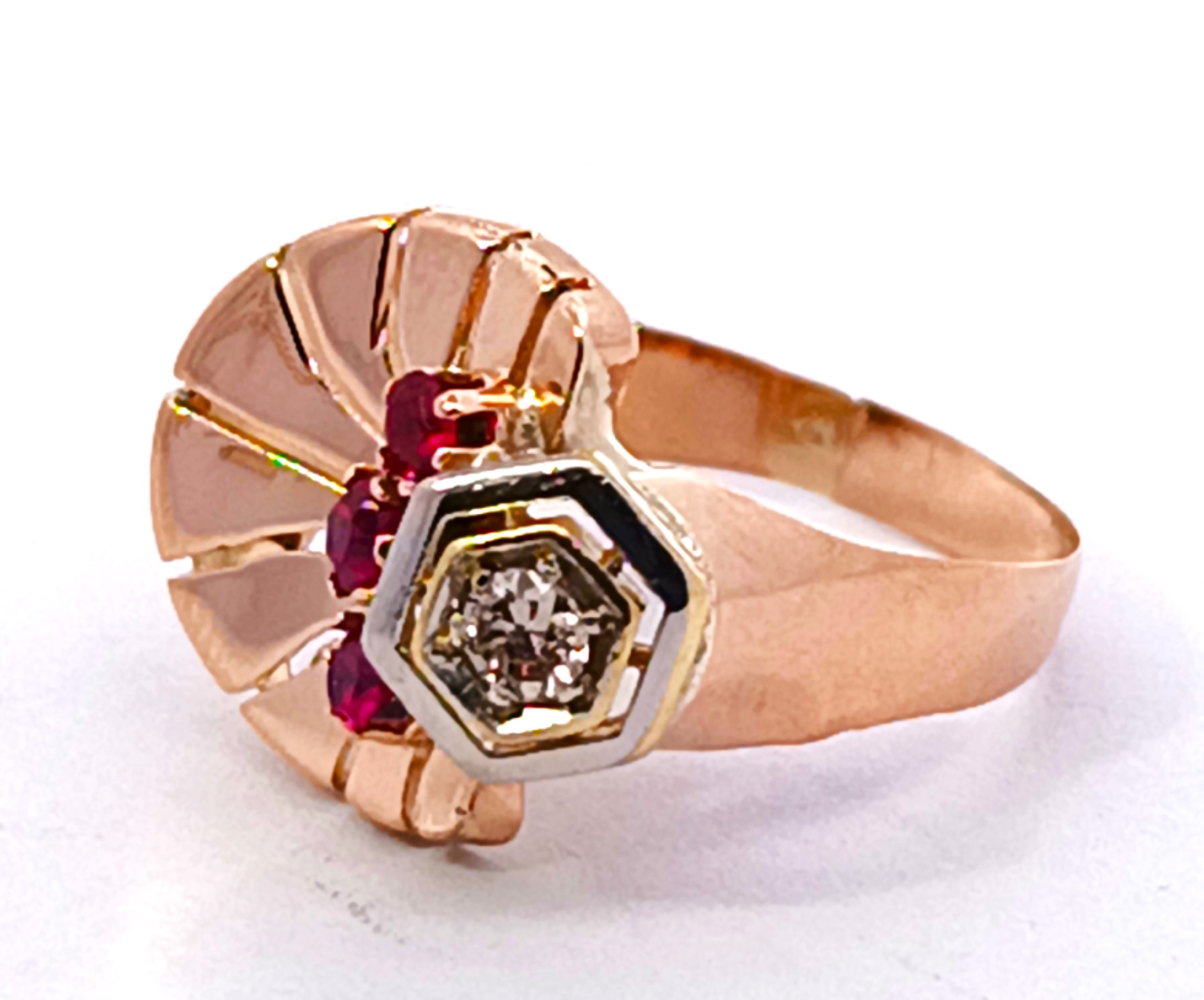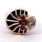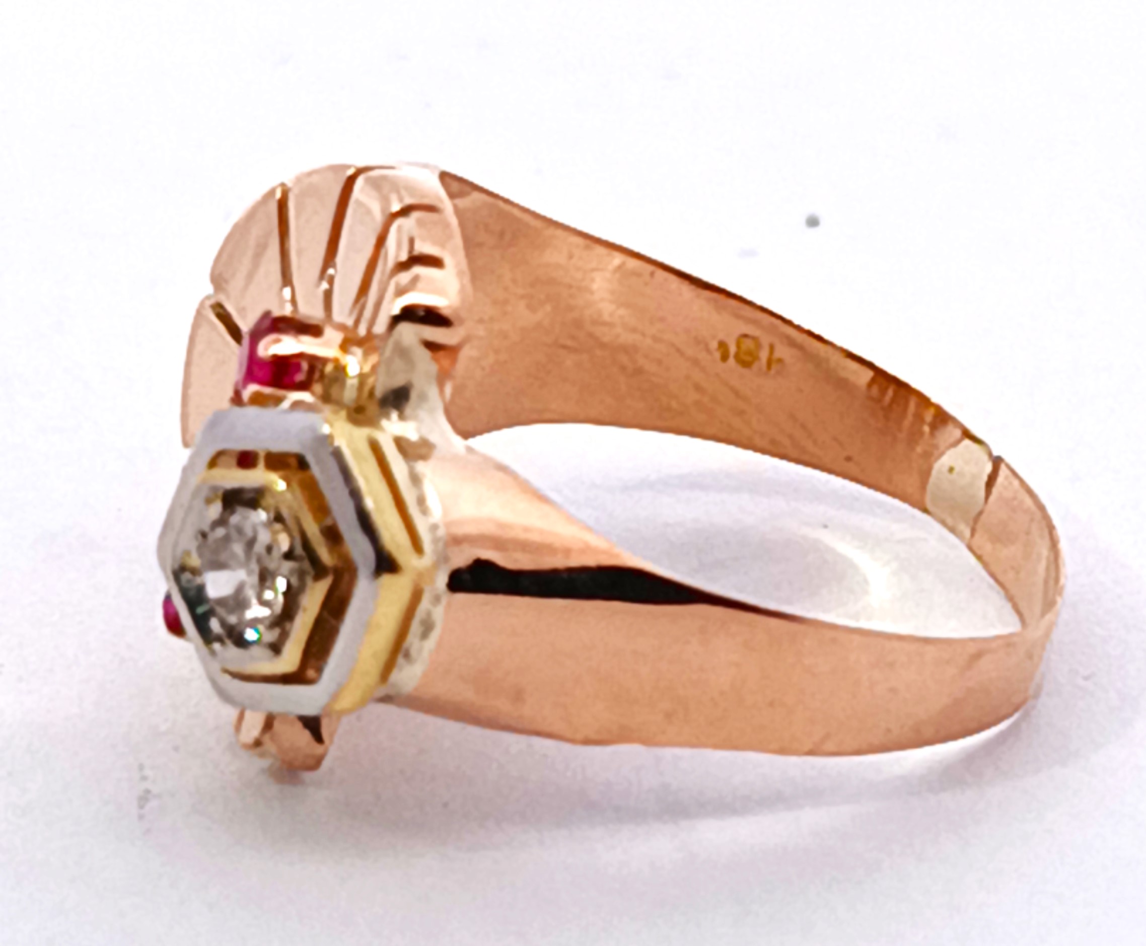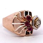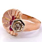 Anillo chevallier año 40 realizado en or 18k con detalle de platino 950 , brillantes autentico y rubies.