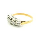 Anillo cintillo antiguo realizado en oro 18k con engarces sobre grifas de platino 950. Posee 5 brillantes autenticos.