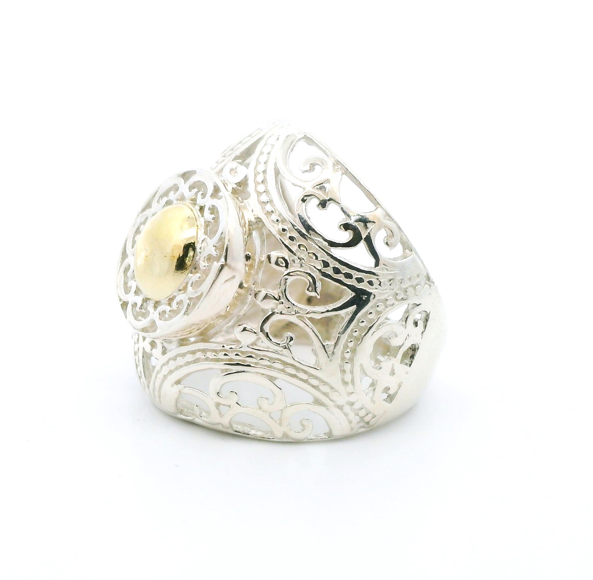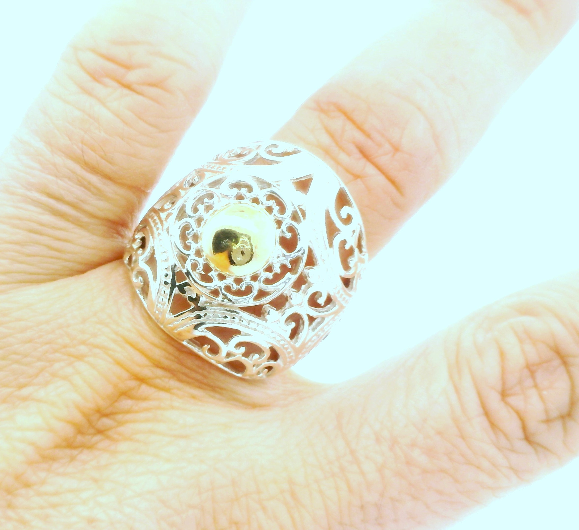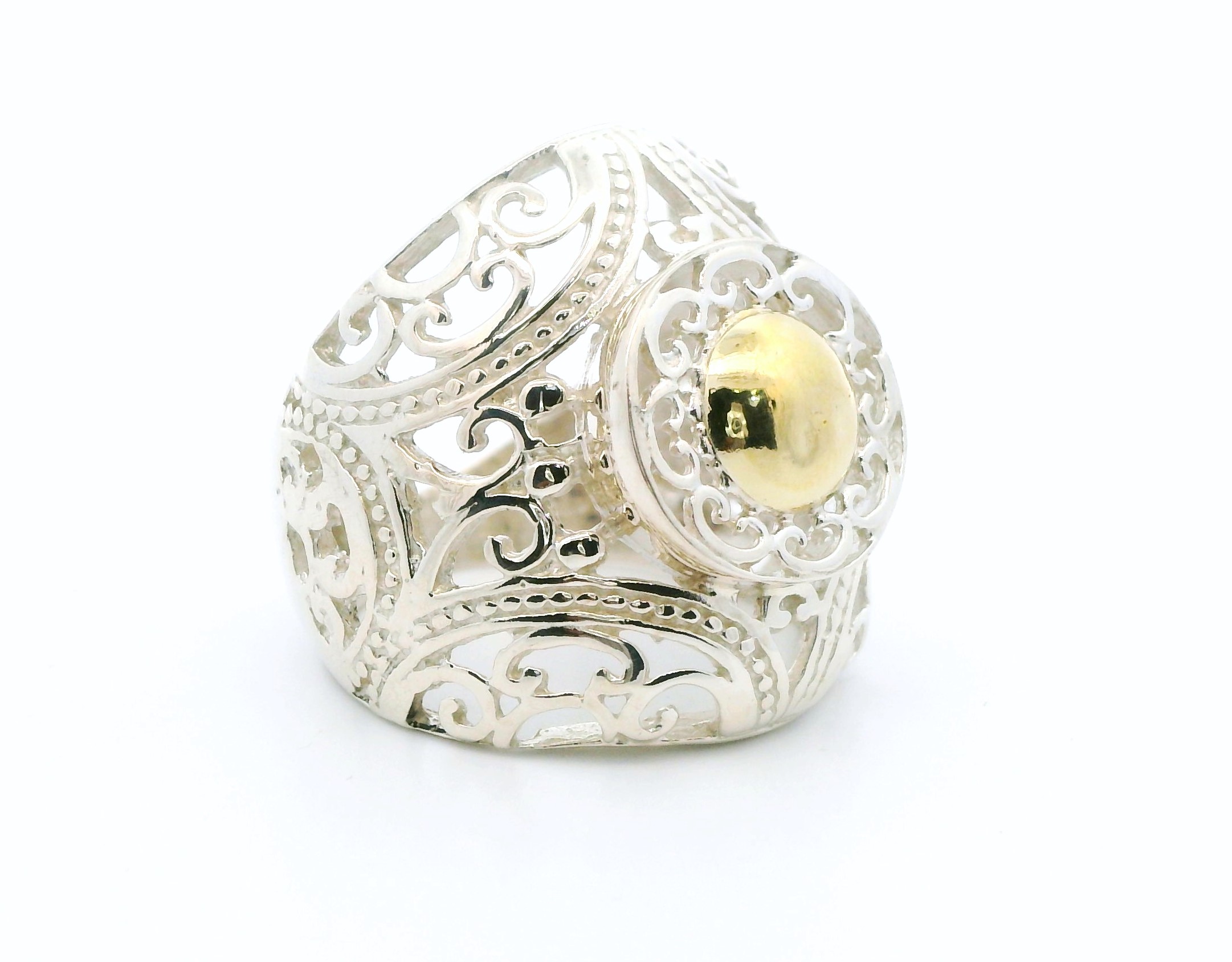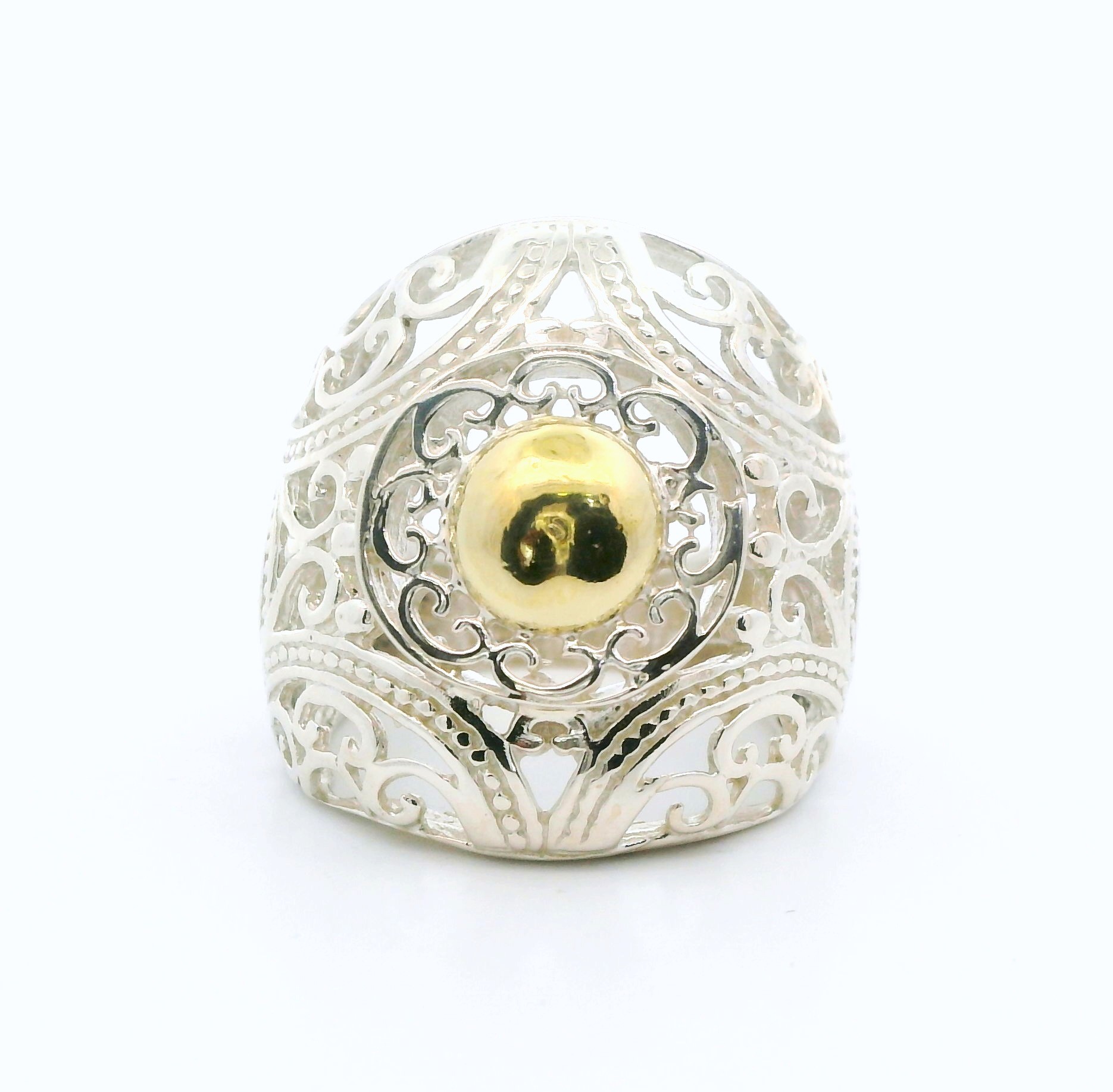 Anillo Cupula Calado Plata 925 Y Oro 18k Macizo