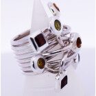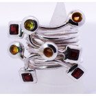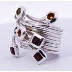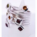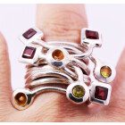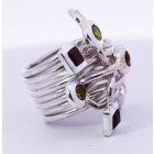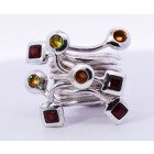 Anillo de diseño moderno , realizado a mano , en plata 925 con granates, topacios y olivinas naturales engarzadas.