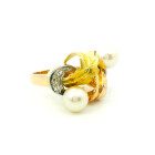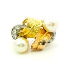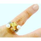 Anillo De Estilo Oro 18k Platino Perlas Brillantes