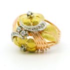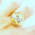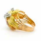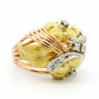 Anillo de delicado diseño año 50 realizado en oro combinando tres colores. Engarces sobre platino 950 . Brillantes autenticos.