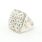 Anillo de diseño moderno realizado en plata 925. Diseño central de flores con cubics engarzados.