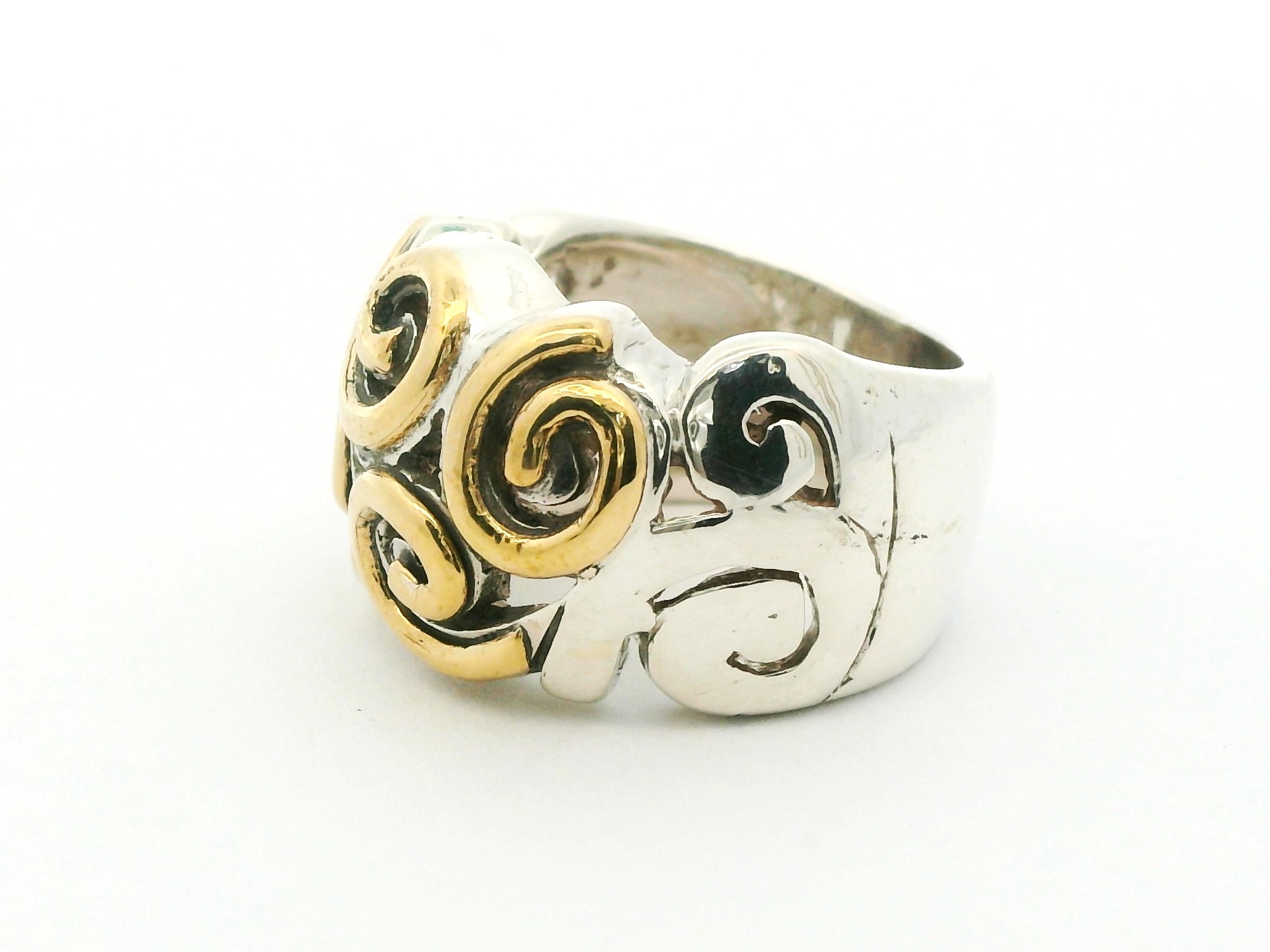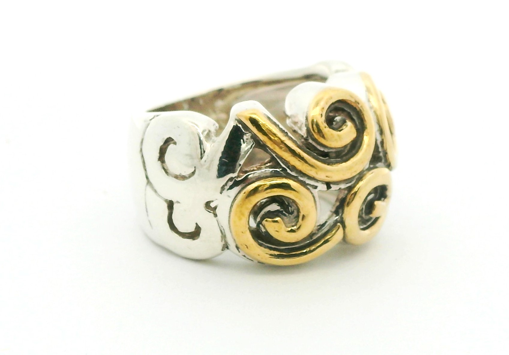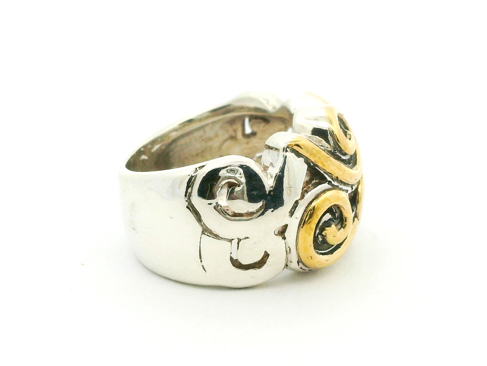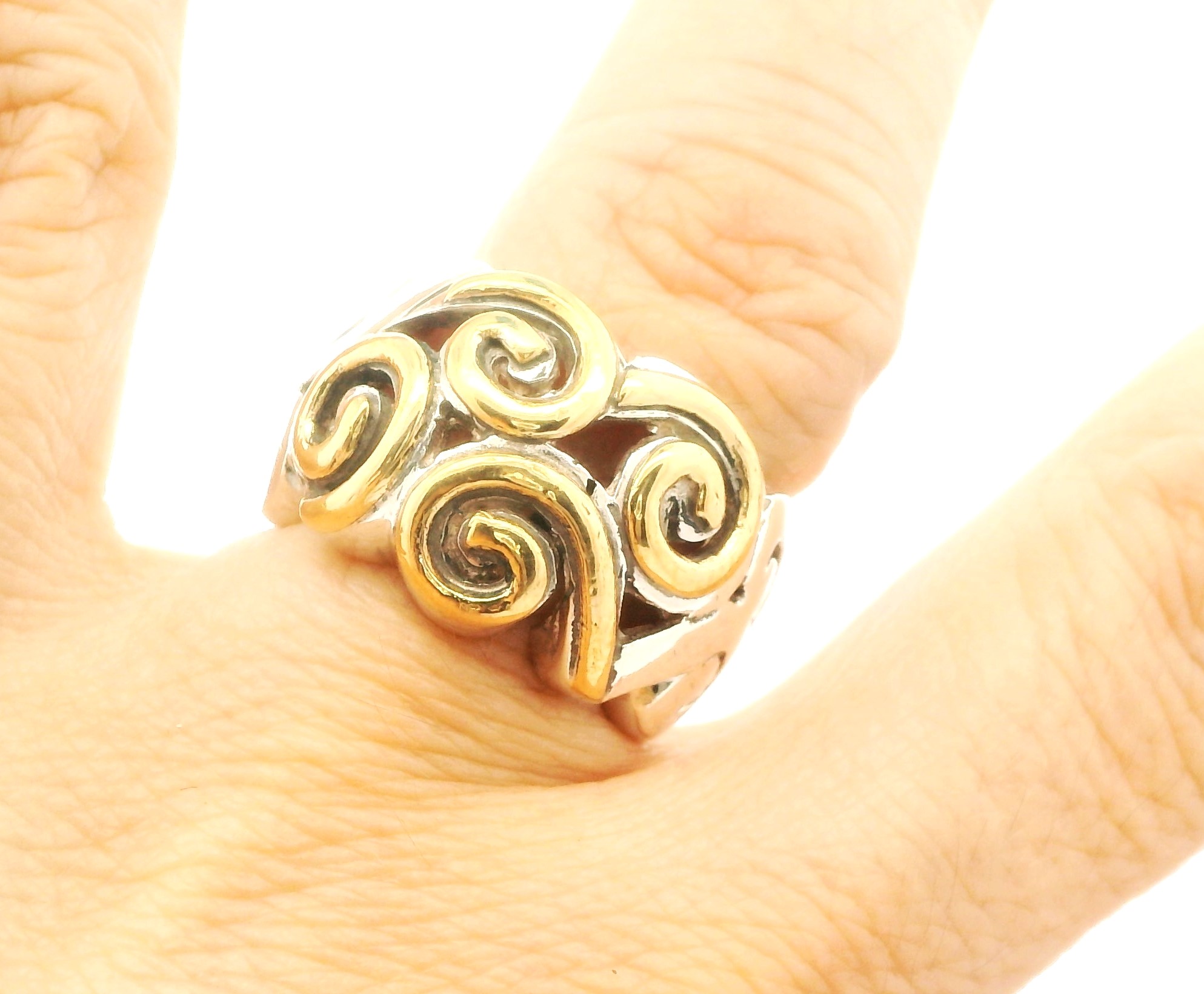 Anillo Diseño Plata 925 Y Oro 18k Macizo Olas