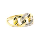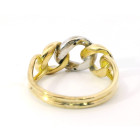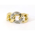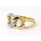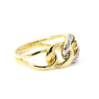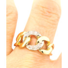 Anillo moderno estilo Cartier , realizado en oro 18k ,combinado , color blanco y amarillo . Detalle de brillantes engarzados en la parte central.