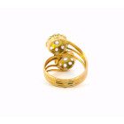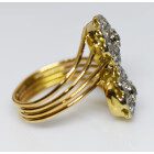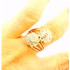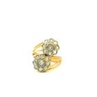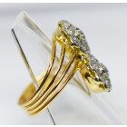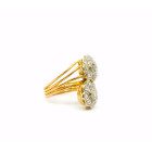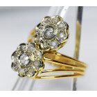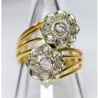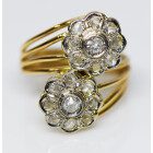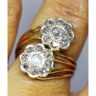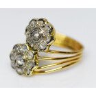 Anillo de diseño antiguo , modelo doble roseta , realizado en oro 18k y engarces sobre platino 950 , brillantes autenticos , 1 kilate en total.