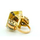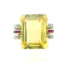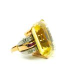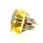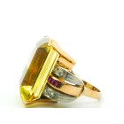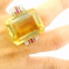Enorme anillo art deco , realizado en oro 18k con topacio imperial central de gran tamaño , rubies carre y brillantes .