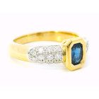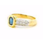 Gran anillo moderno realizado en oro 18k de origen Frances sellado y punzonado , con zafiro azul central y pave de brillantes.