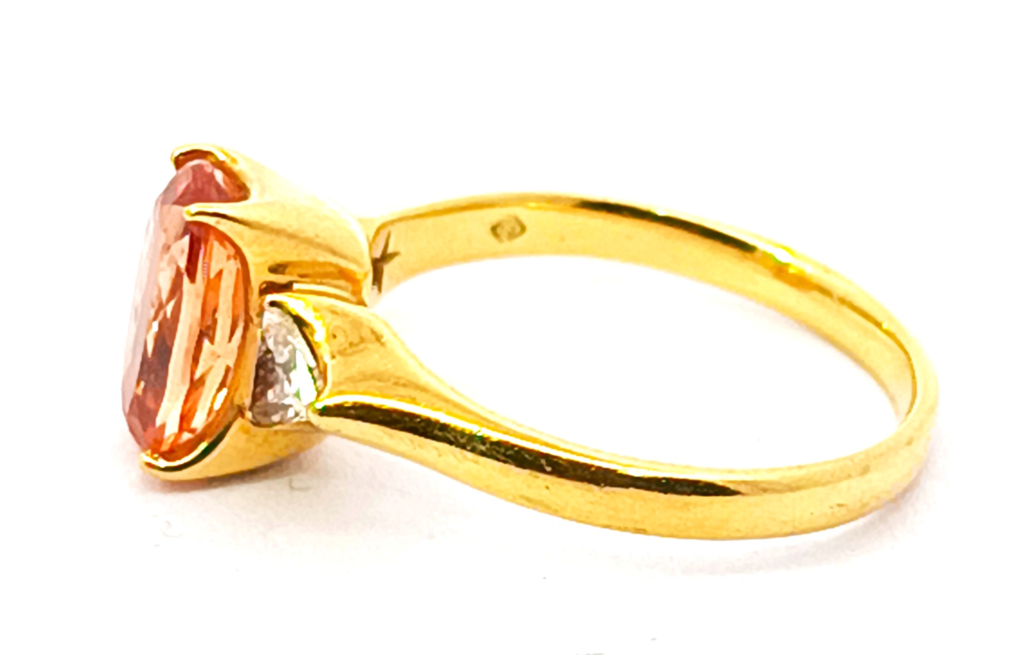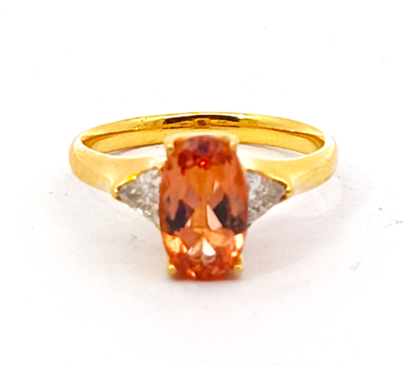 Anillo H. Stern original firmado realizado en oro 18k con topacio caramelo y brillantes triangulares a ambos lados.