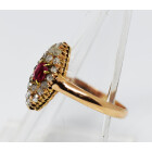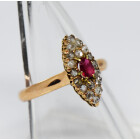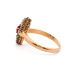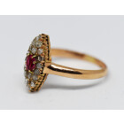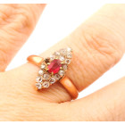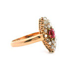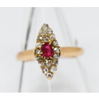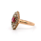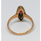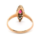 Anillo marquiz antiguo , realizado en oro 18 kilates, zafiro rosa central, talla oval de maxima calidad y pureza, peso en kilates aprox: 0,15 ct , rodeado de brillantes autenticos talla rose cut de maxima calidad y purreza, peso en kilates: 0,20 ct , peso en gramos de la alhaja: 2,6 gr