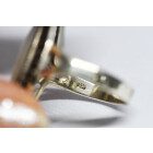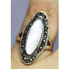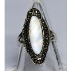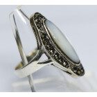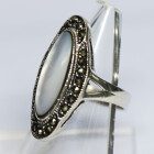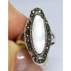 Anillo de estilo antiguo realizado en plata con centro de nacar y detalles de marquesitas engarzadas