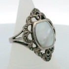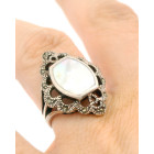 Anillo de diseño antiguo , realizado en plata 925 , centro de nacar y marquesitas. Modelo: marquiz.