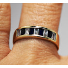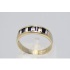 Anillo moderno medio sinfin , oro blanco 18 kilates , posee baguettes de zafiro azules y blancos , peso en kilates: 0,50 ct , medio kilates total , peso en gramos de la alhaja: 3,6 gr