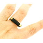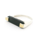 Anillo medio sinfin de diseño moderno realizado en plata 925 con detalles en oro 18k. Posee baguette de onix central.