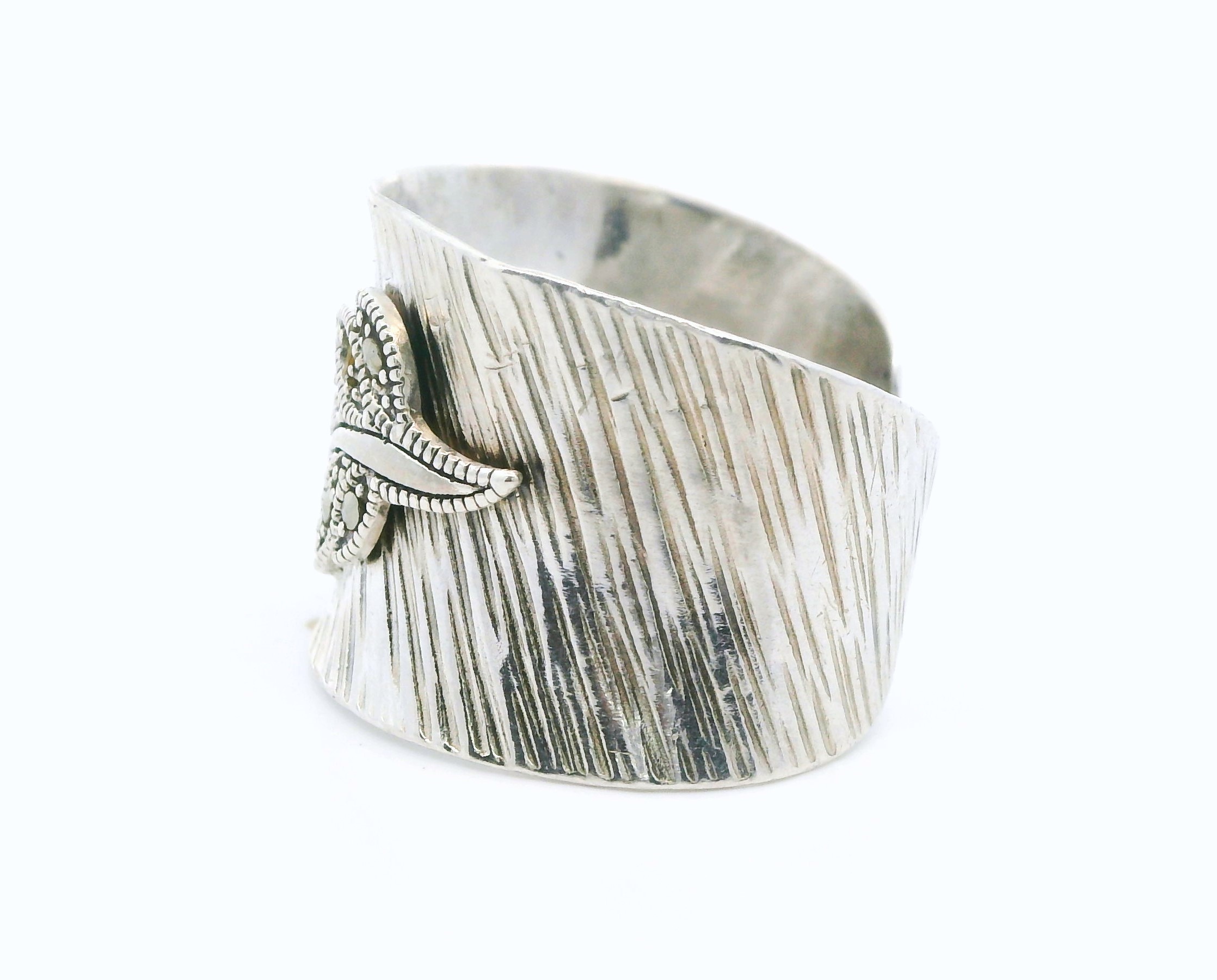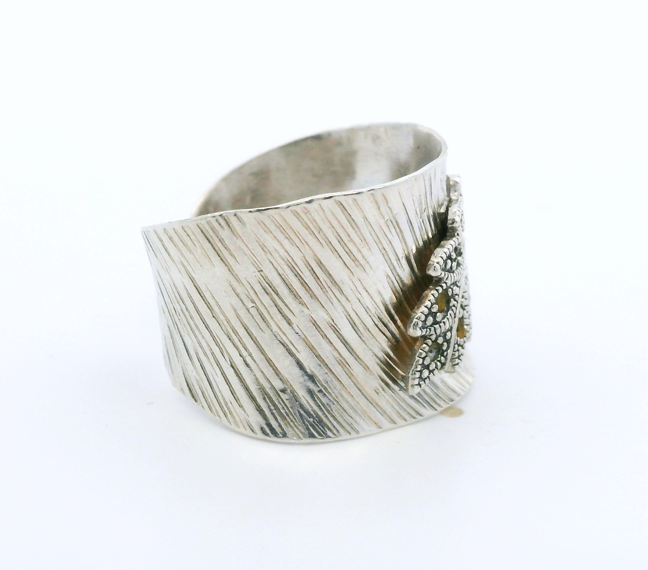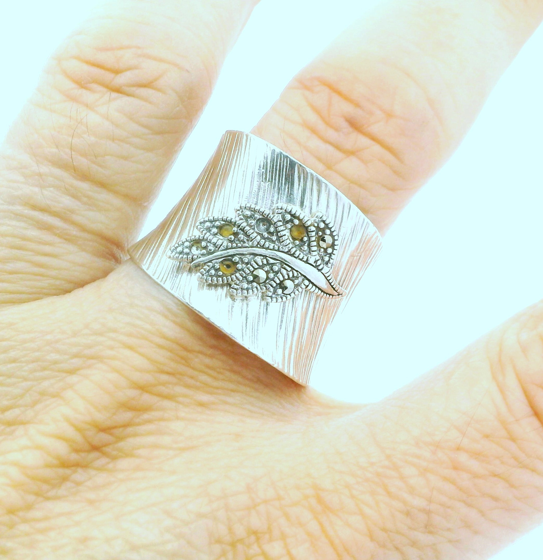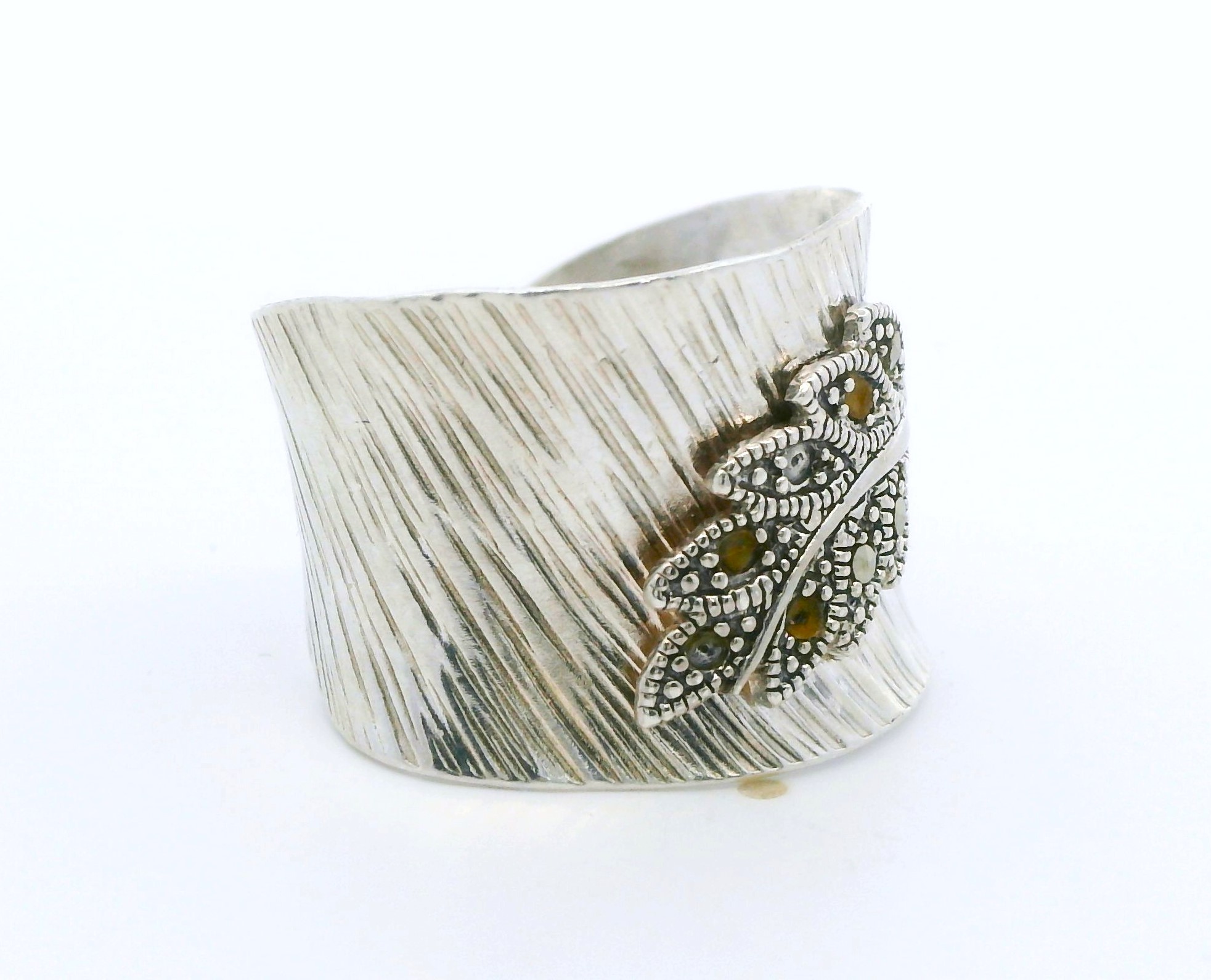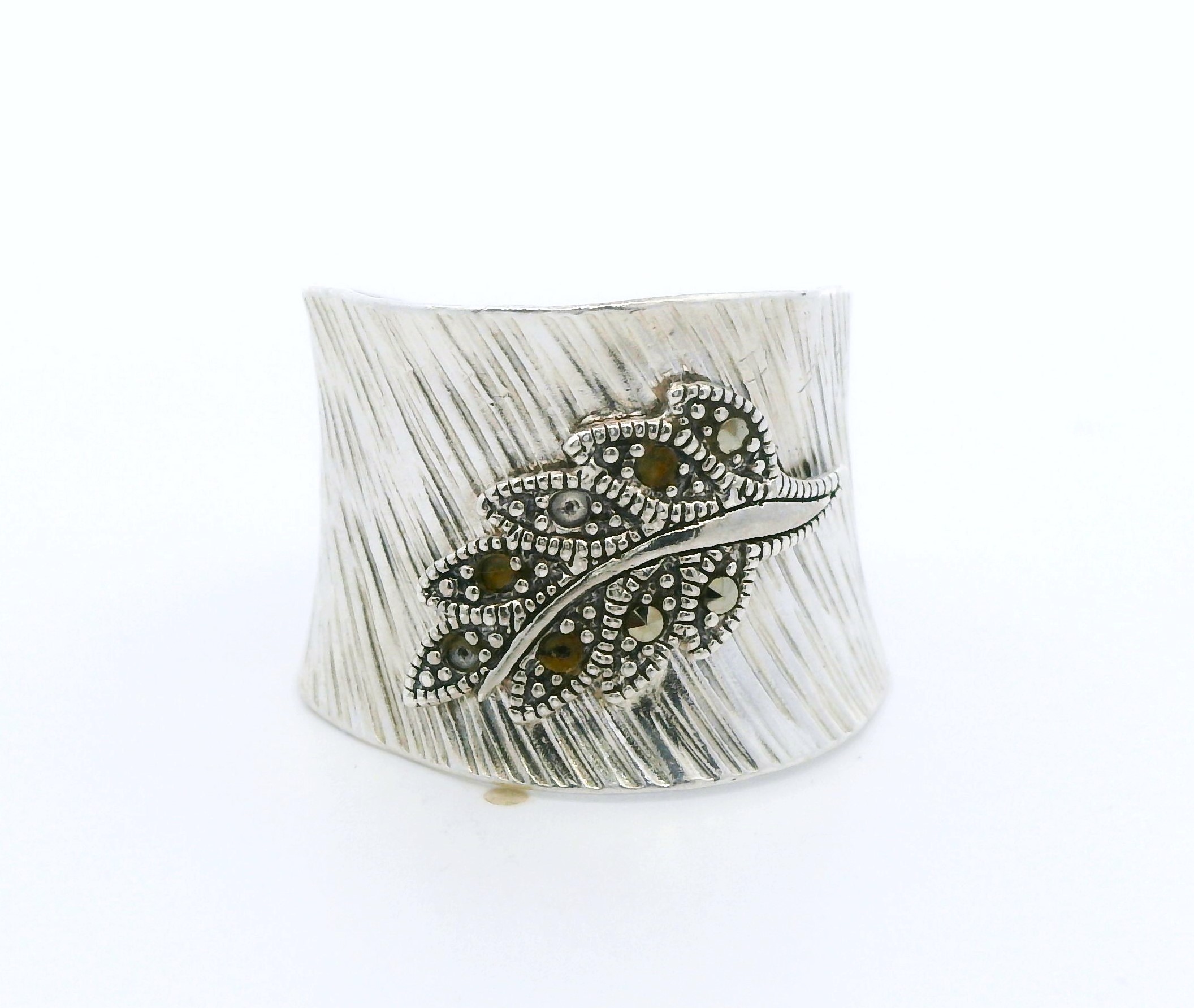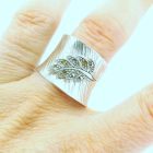 Anillo moderno realizado en plata 925 , ajustable. Modelo: pluma con marquesitas.
