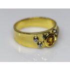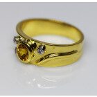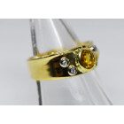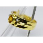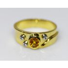 Anillo moderno oro 18 kilates , zafiro naranja central oval facetado , brillantes autenticos