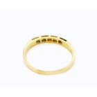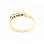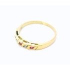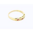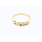 Anillo moderno modelo cintillo realizado en oro 18k . Posee zafiros blancos y rubies engarzados de origen reconstituido.