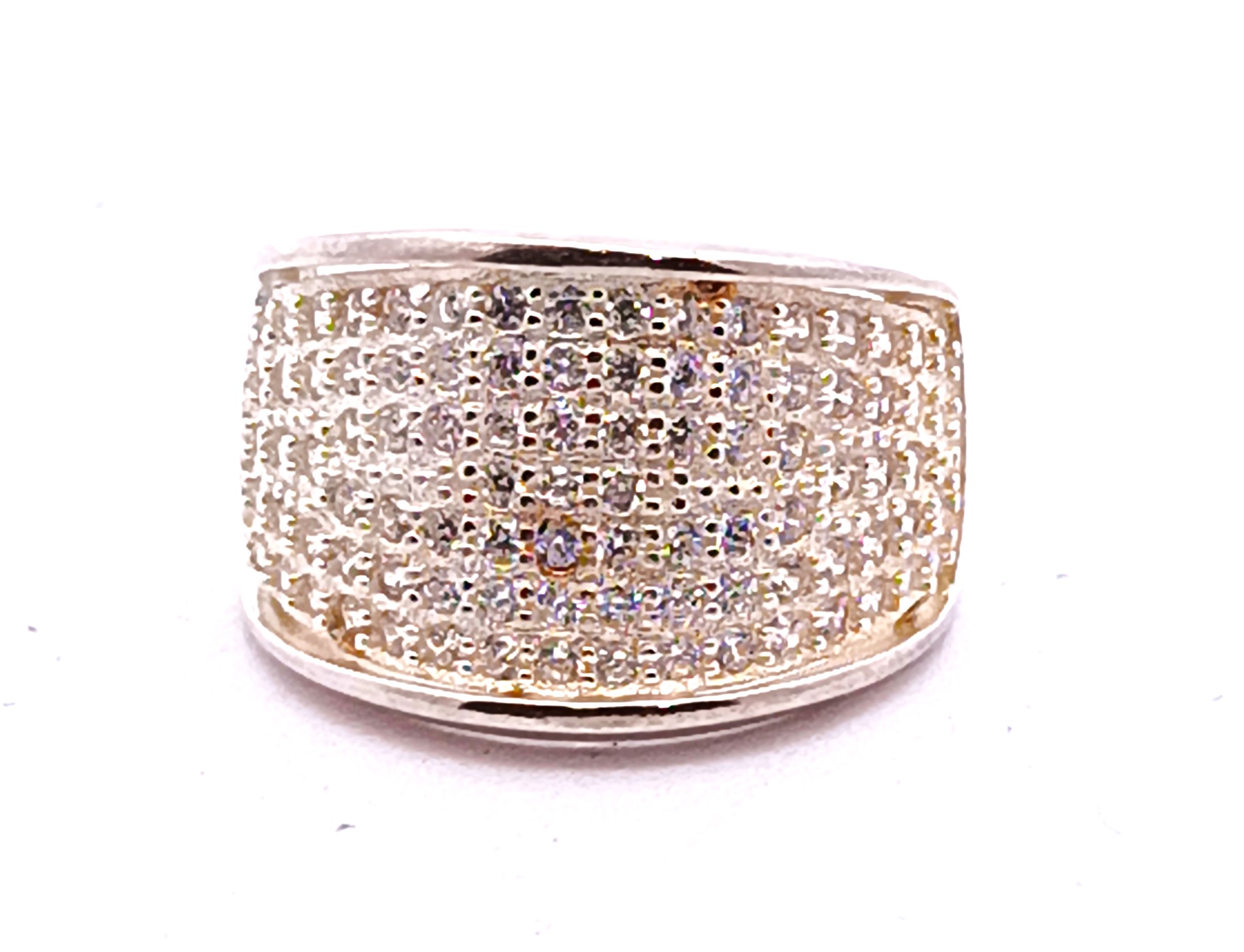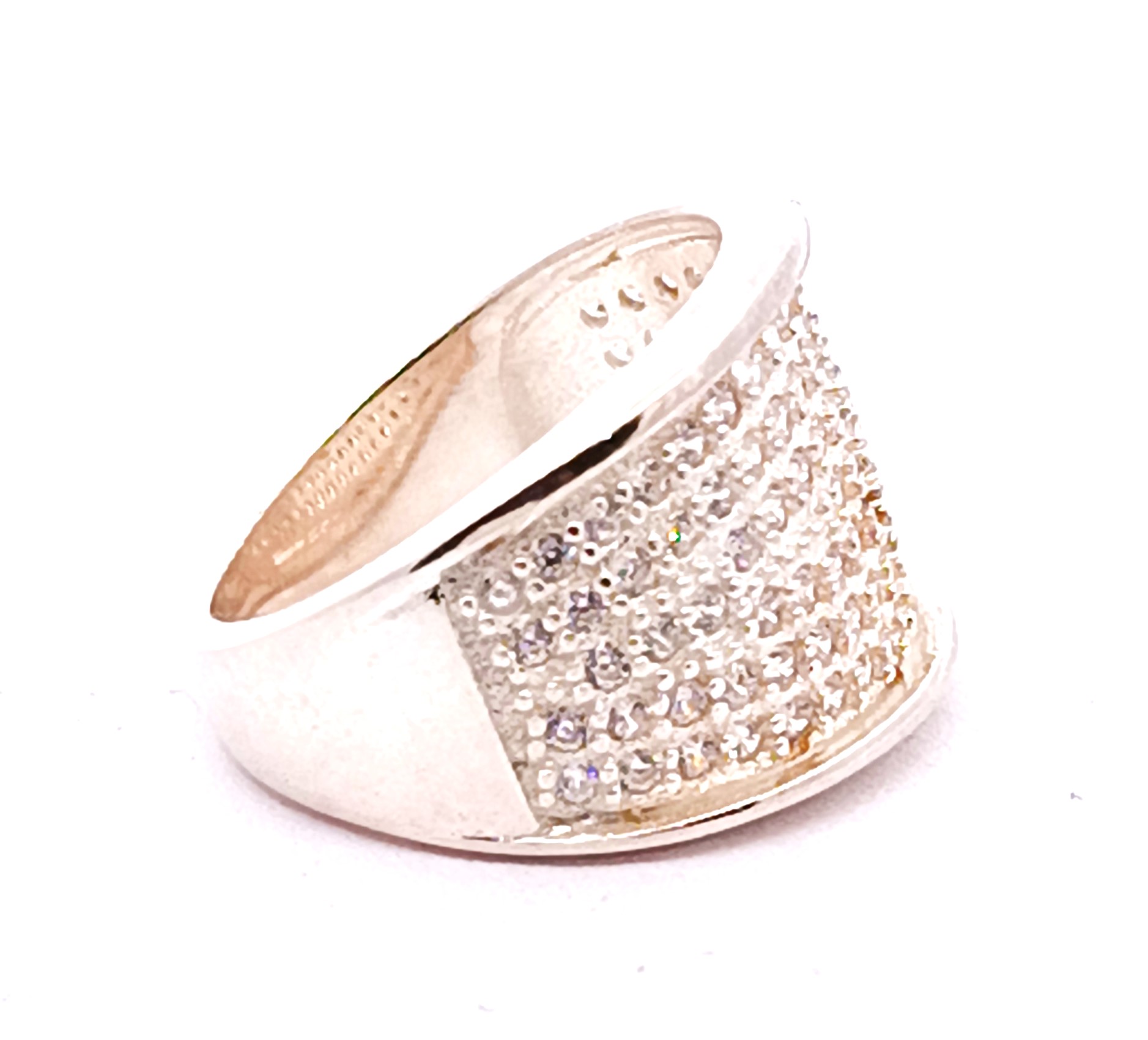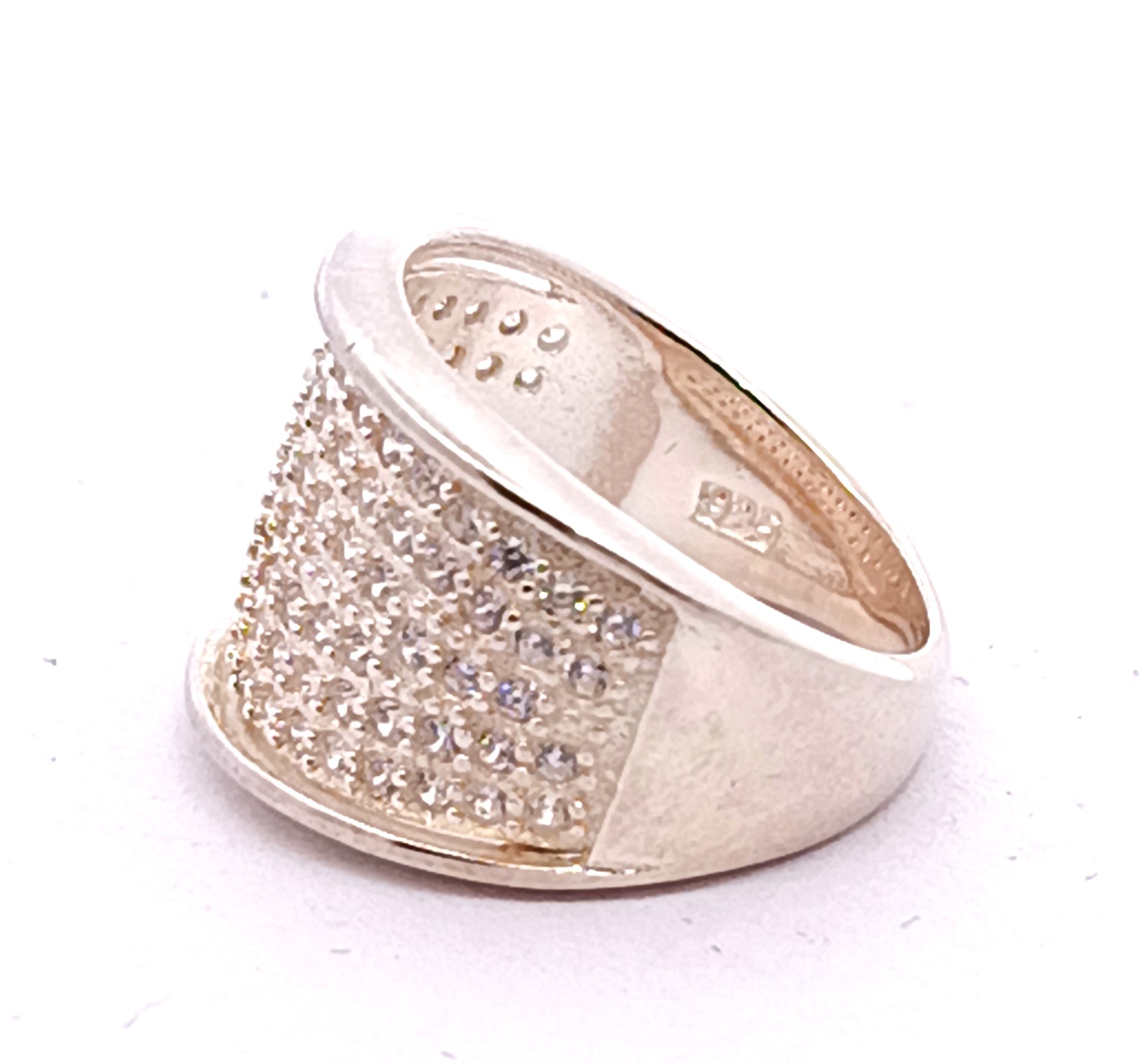 Anillo Moderno Diseño Pave Plata 925 Cubics