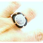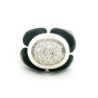 Anillo moderno de diseño realizado en plata 925 con pave central de cubics y esmalte negro.