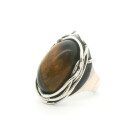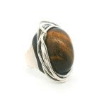 Anillo de diseño moderno realizado en plata 925 con enorme ojo de tigre natural , talla oval central.