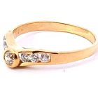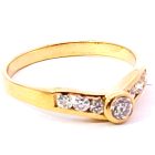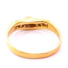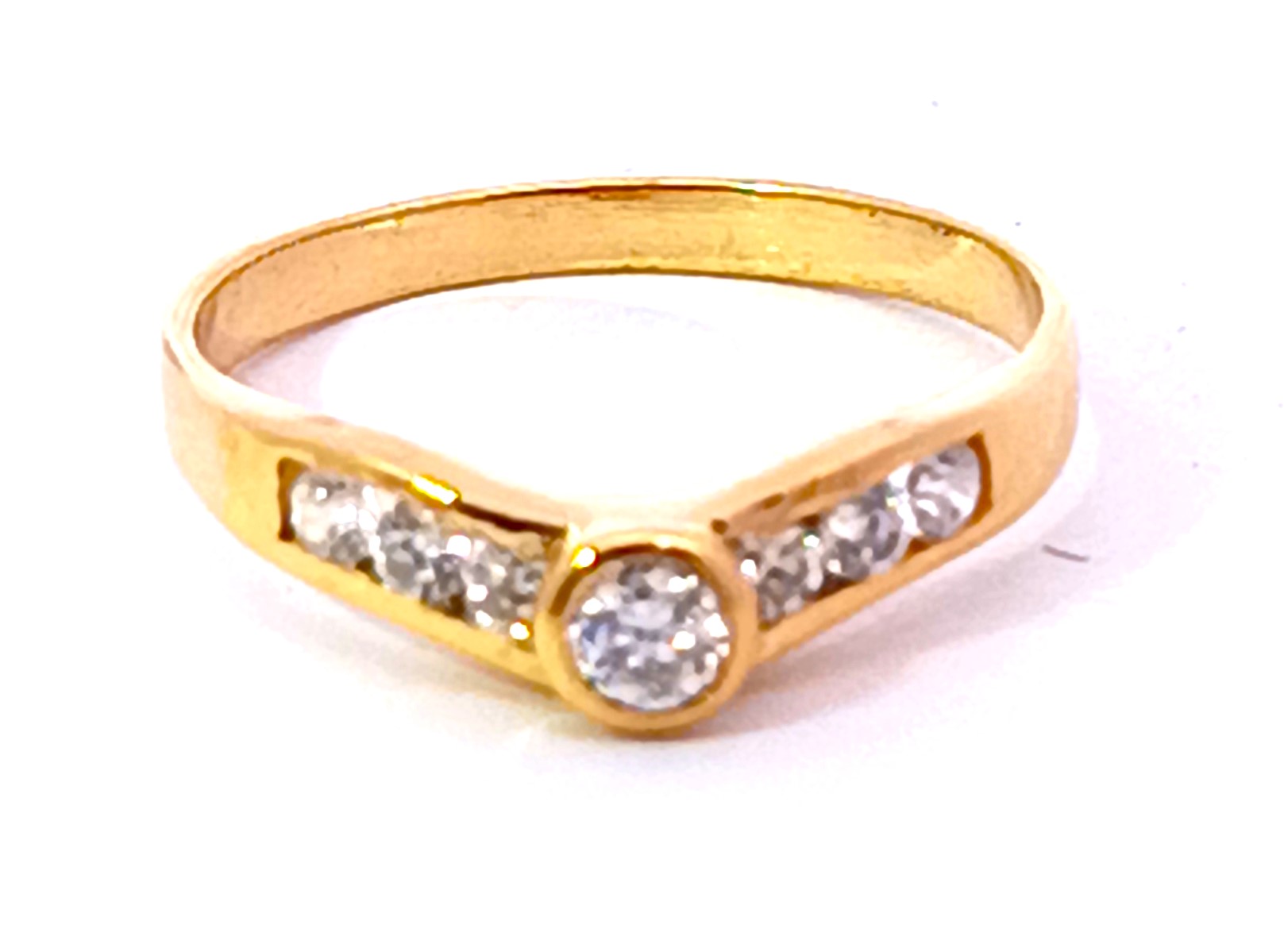 Anillo moderno de diseño realizado en oro 18k. Posee zafiros blancos formando un v central.