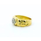 Anillo de diseño estilo Cartier realizado en oro amarillo y engarce sobre oro blanco , brillantes autenticos.