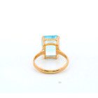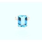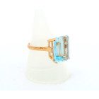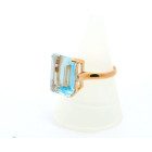 Espectacular anillo moderno , modelo solitario con agua marina central , talla esmeralda , peso en kilates: 9 ct , Color de oro rosa.