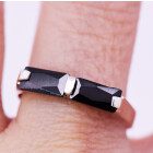 Anillo moderno realizado en plata 925 , modelo: medio sin fin. Onix baguette facetados.