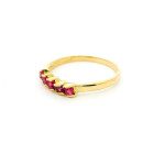 Anillo moderno medio sinfin realizado en oro 18k. Posee rubies carre .