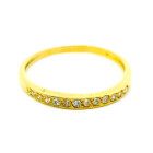 Anillo moderno medio sinfin realizado en oro 18k con zafiros blancos engarzados.