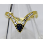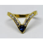 Anillo modero realizado en oro 18 k, zafiro central gota autentico y brillantes autenticos, peso en gramos de la alhaja:4,9 gr