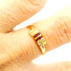 Anillo moderno realizado en oro 18k con rubies y zafiros blancos .