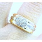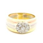 Anillo moderno realizado en oro 18k , combinando los 3 colores de oro , con importante roseta de brillantes en el centro.