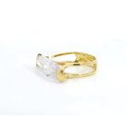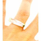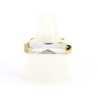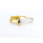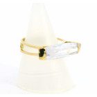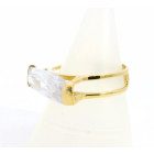 Anillo moderno de gran orfebreria realizado en oro 18k , con baguette central de cubic.