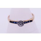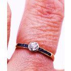 Anillo moderno realizado en oro 18k con brillantes autentico central y zafiros natural carre.