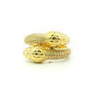 Anillo de estilo moderno realizado en oro 18k con brillantes engarzados y esmeraldas. Modelo: vivoras enfrentada