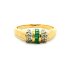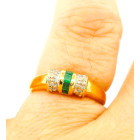 Anillo moderno , oro 18 kilates , esmeraldas carre y brillantes autenticos , peso en kilates: 0,12 ct , peso en gramos: 3,3 gr