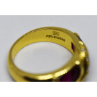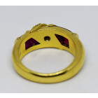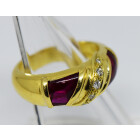 Anillo Belgiorno original , relaizado en oro 18 kilates ,color de oro amarillo , posee brillantes centrales , talla completa europea, maxima calidad y pureza , peso en kilates: 0,05 ct totales, y amabios lados posee rubies cabullon , maxima calidad y color , , peso en kilates aprox: 0,60 ct, peso en gramos de la alhaja: 8grs