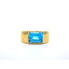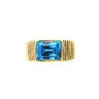 Anillo moderno realizado en oro 18k , con topacio azul central talla esmeralda rectangular.