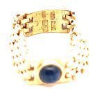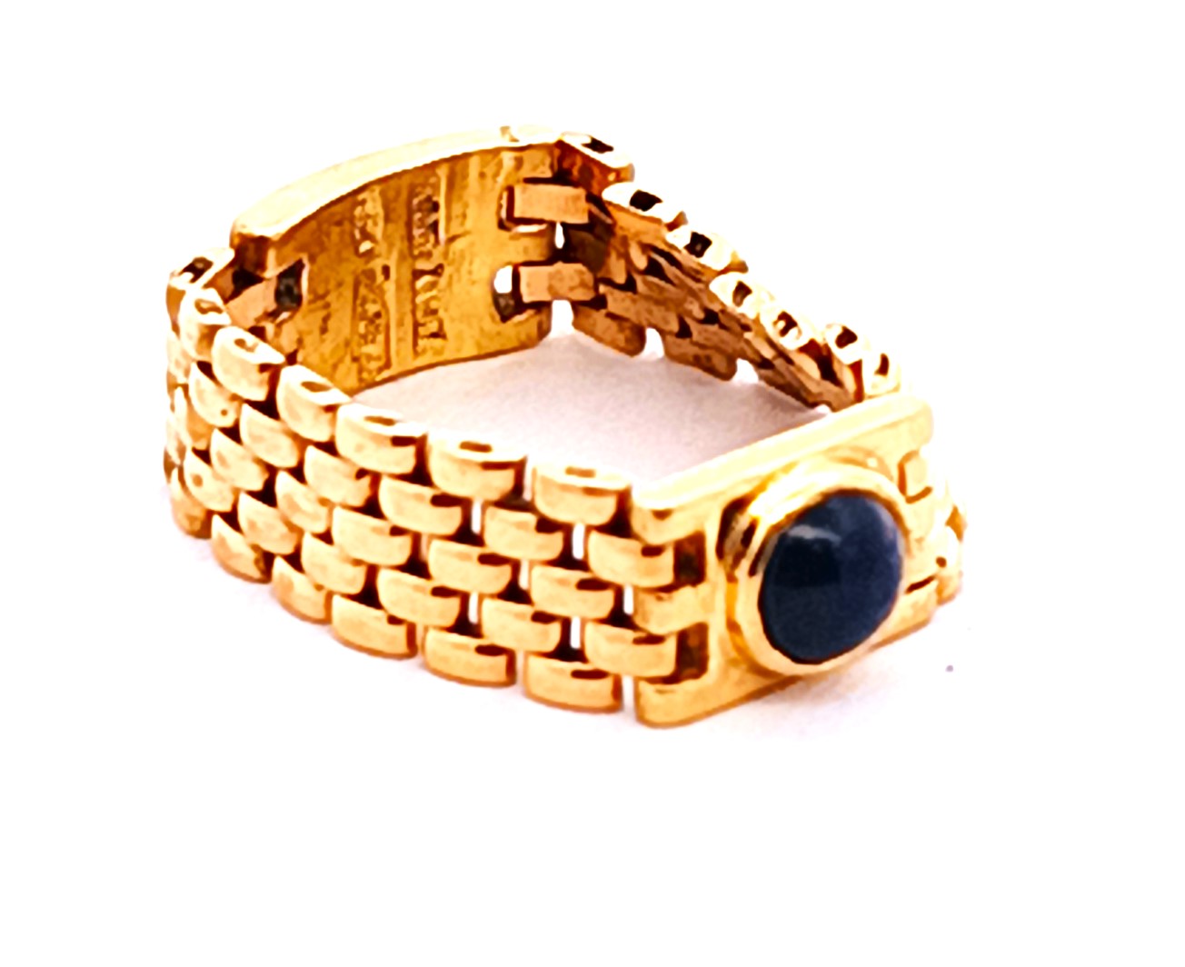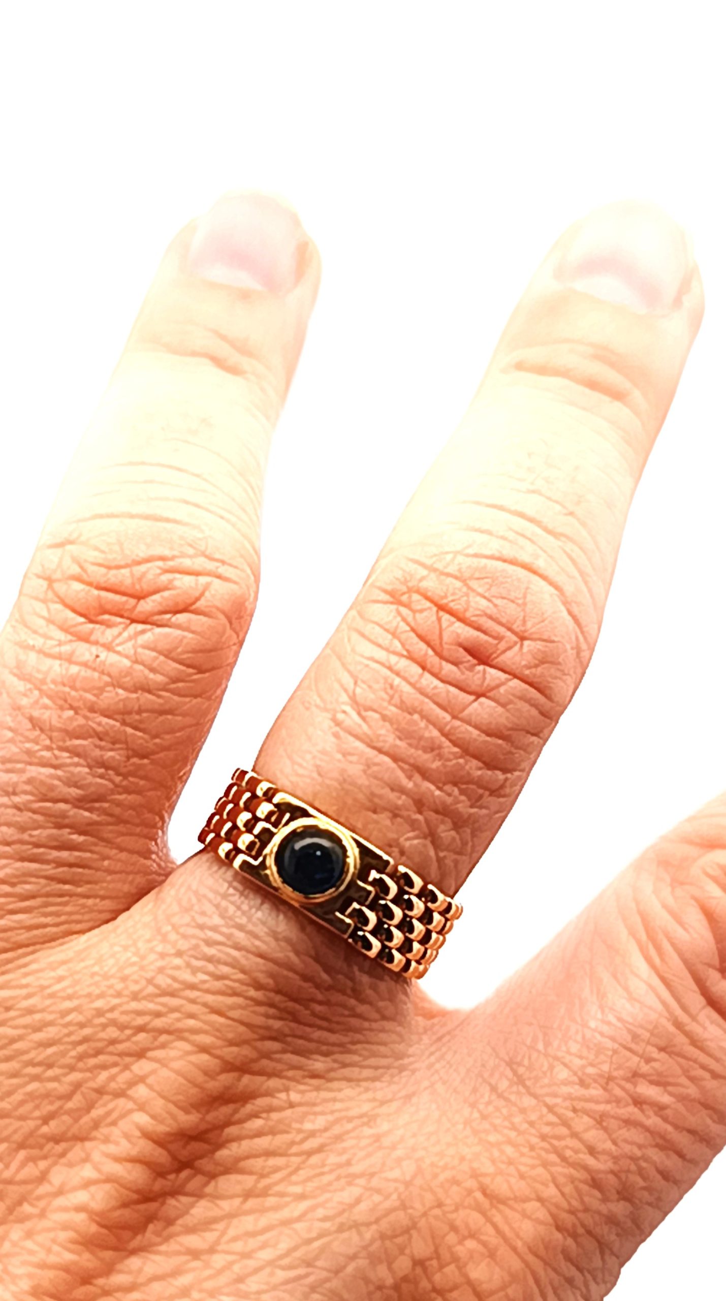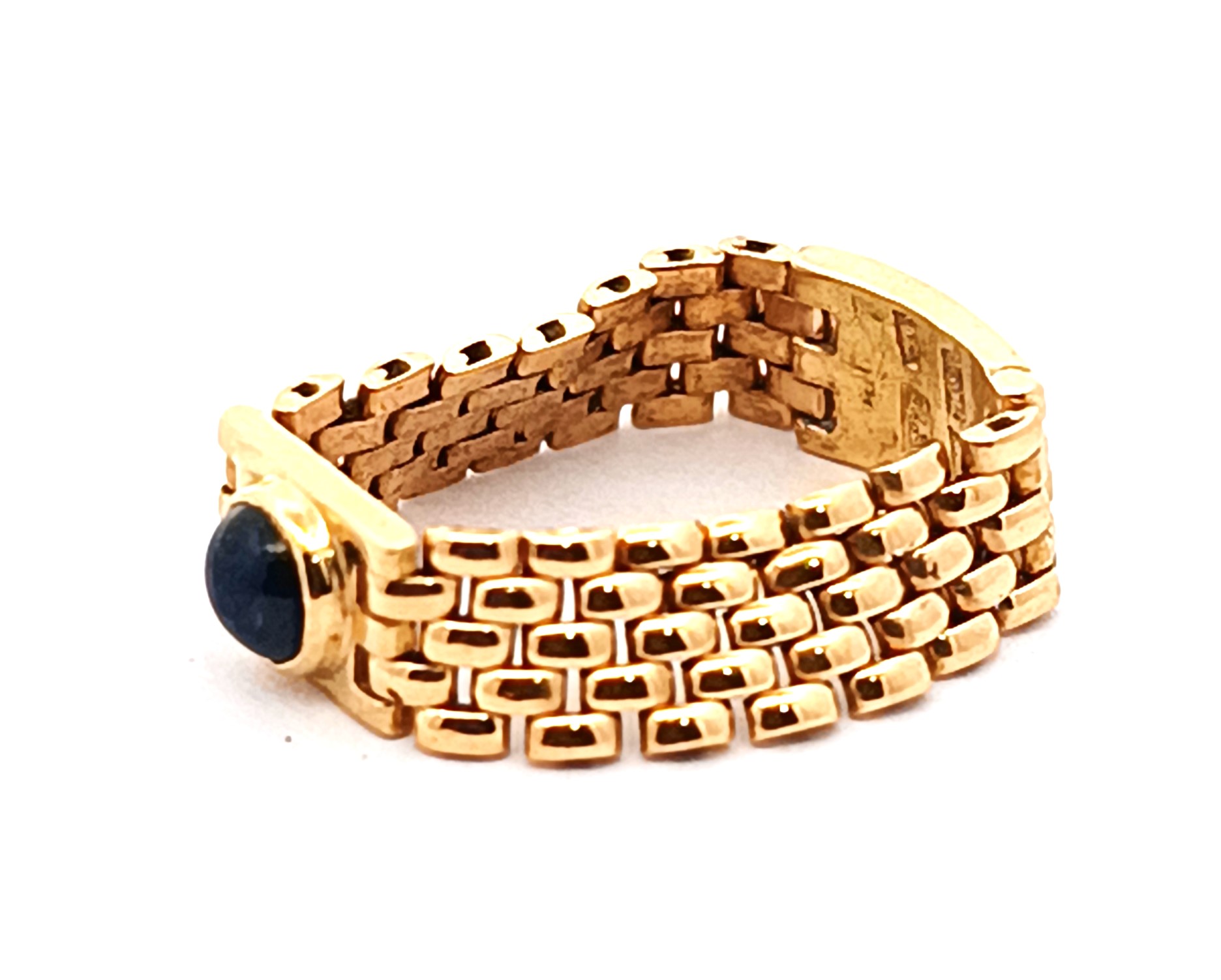 Anillo Moderno Oro 18k Malla 5 Lineas Zafiro Cabullon