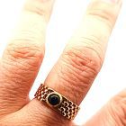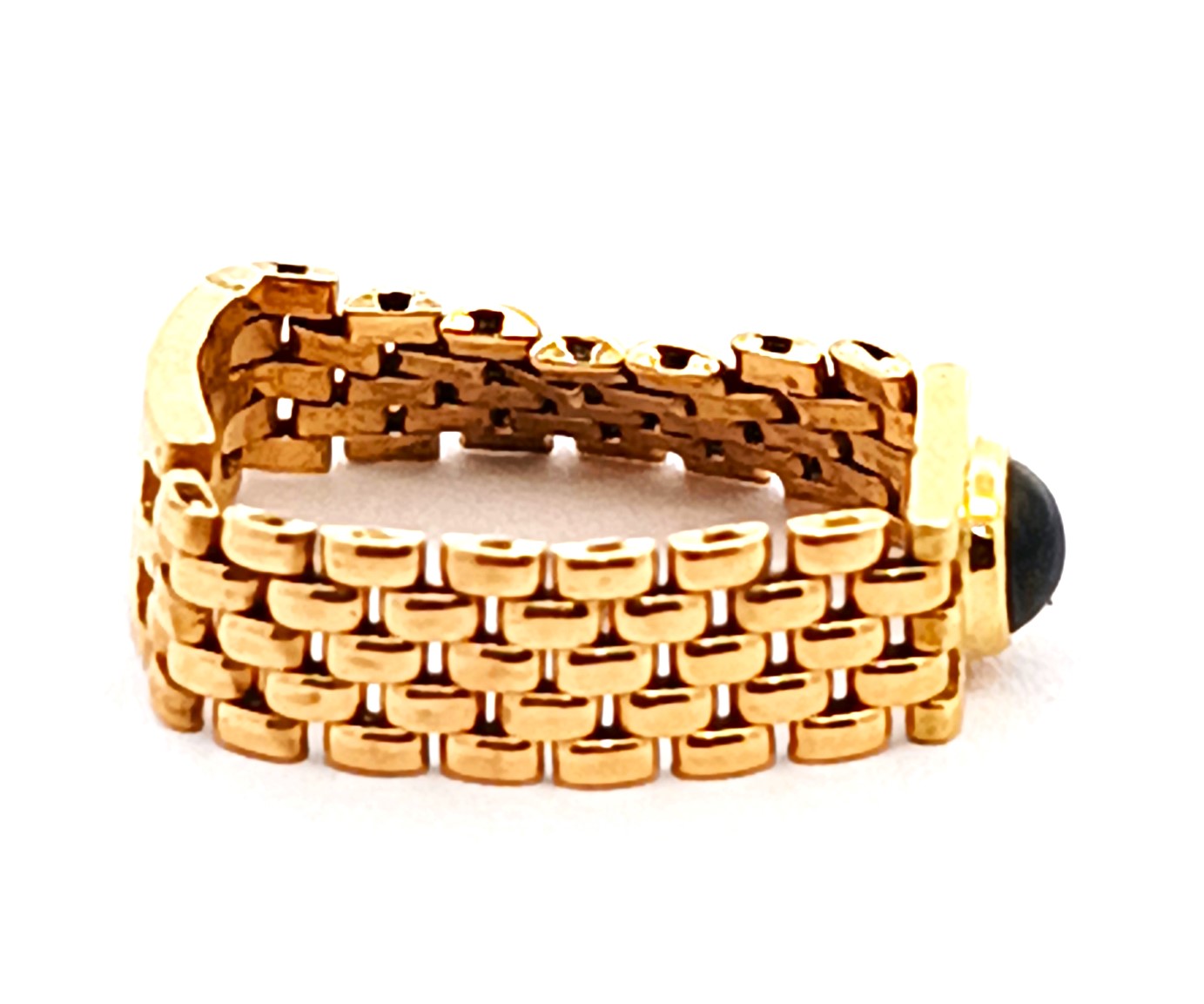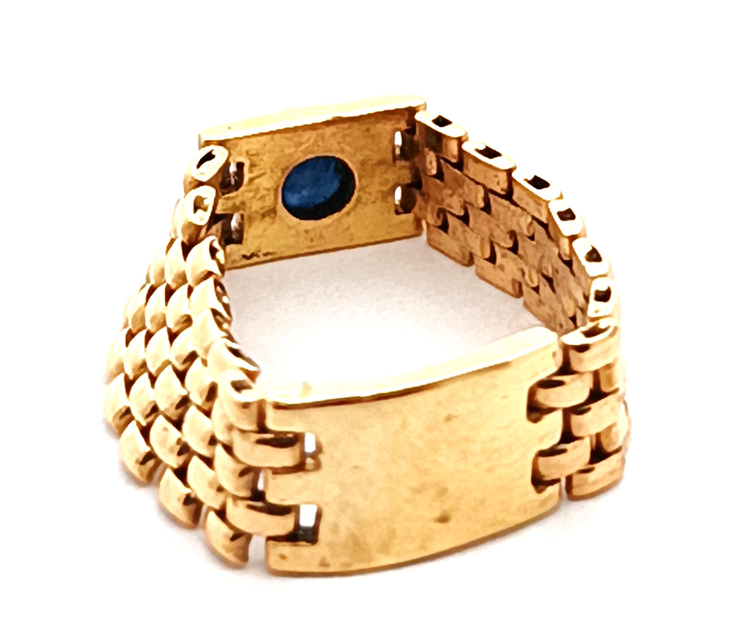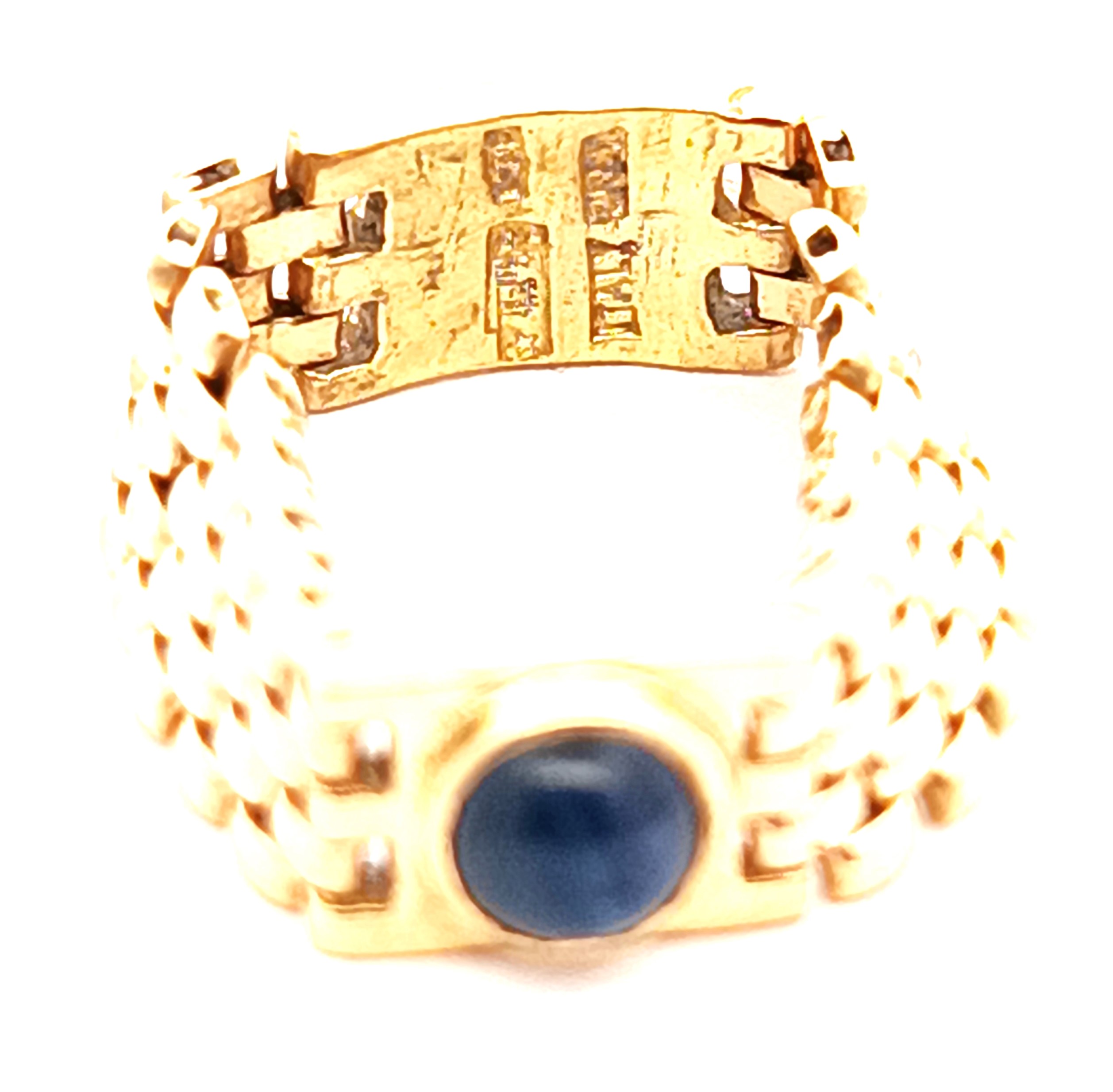 Anillo Moderno Oro 18k Malla 5 Lineas Zafiro Cabullon