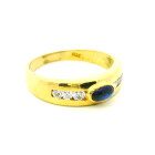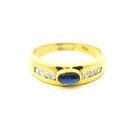 Anillo moderno realizado en oro 18k , zafiro azul oval cabullo central y gemas que acompañan el exquisito diseño.