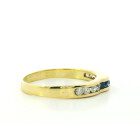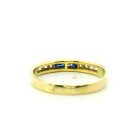 Anillo moderno realizado en oro 18k .Posee zafiros blancos y azules.